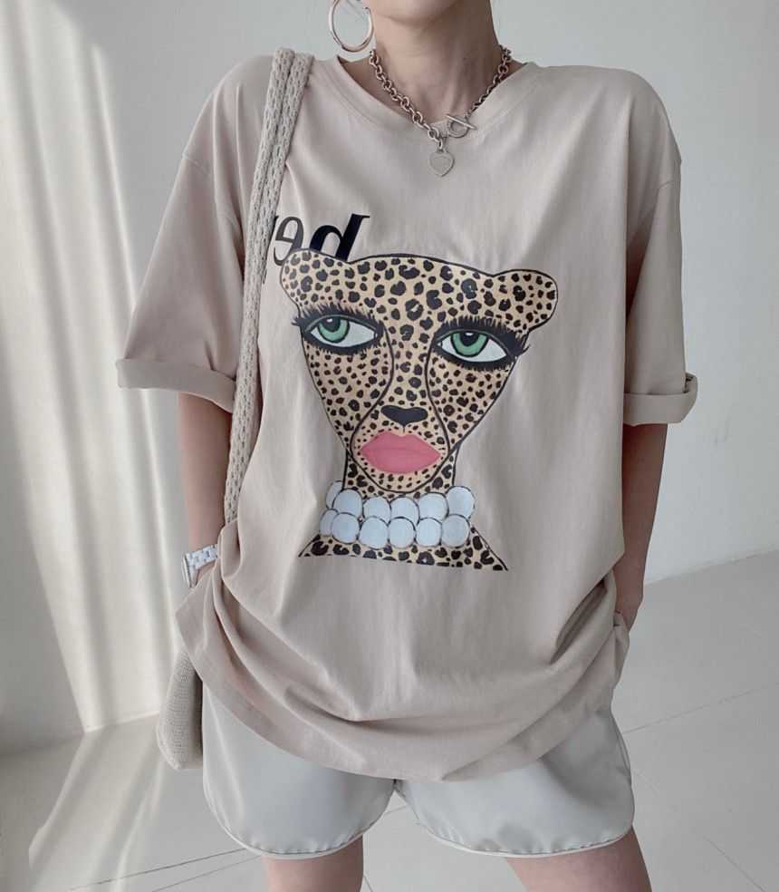 Tshirt Wanita Korean Style ICONZ Import Leopard (5657/00404)